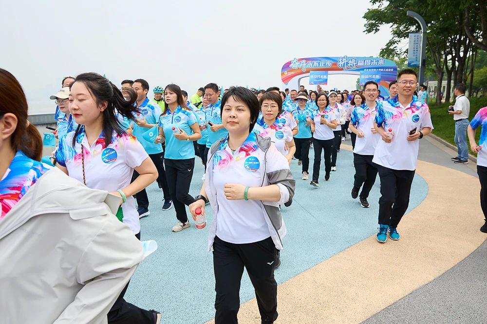 在集团向导的向导下,3公里的跑道酿成了欢喜的海洋,各人或跑或走,一边浏览沿江美景,一边感受着别样的运动兴趣: